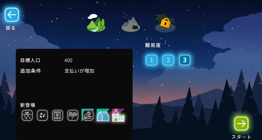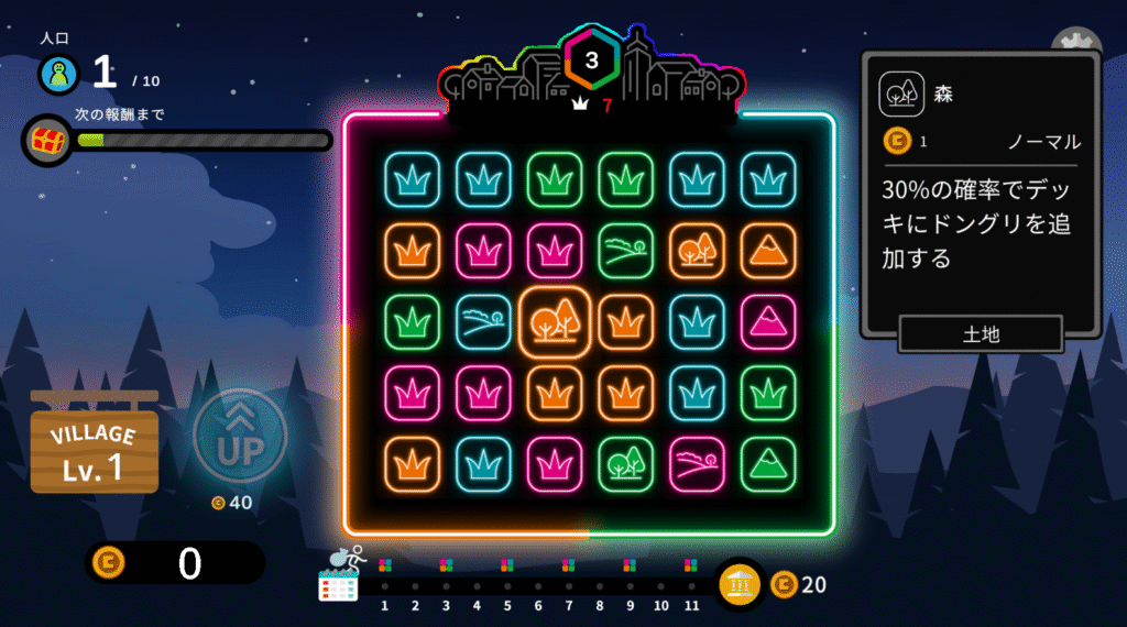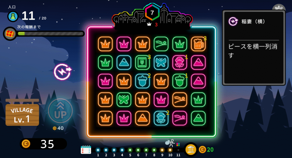 主にこのゲームの目標は目標の人口を達成しつつ、毎年増え続ける支払いにそなえてパズルを崩してお金を集めるといった内容になっています。